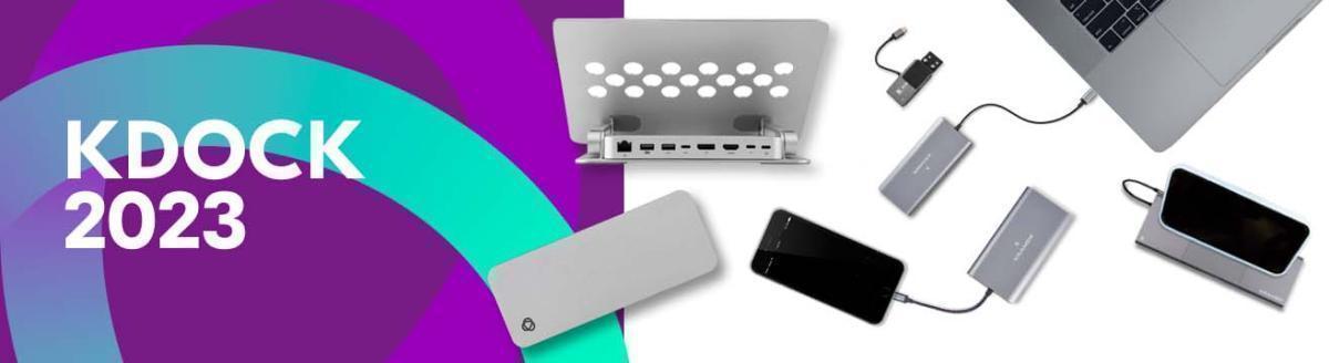 KDock-4 — док-станция в виде настольного пэда-подставки для ноутбука с выходами HDMI, DisplayPort, VGA, а также широким набором портов: 2хUSB 3.0 тип А, USB 2.0 тип А, проходным USB-C с функцией быстрой зарядки PD, RJ-45 Ethernet, слотами SD/micro-SD и аудио mini-jack 3,5 мм. Из особенностей конструкции — антискользящая полоска и откидная подставка для удобного размещения смартфона под углом к поверхности стола.