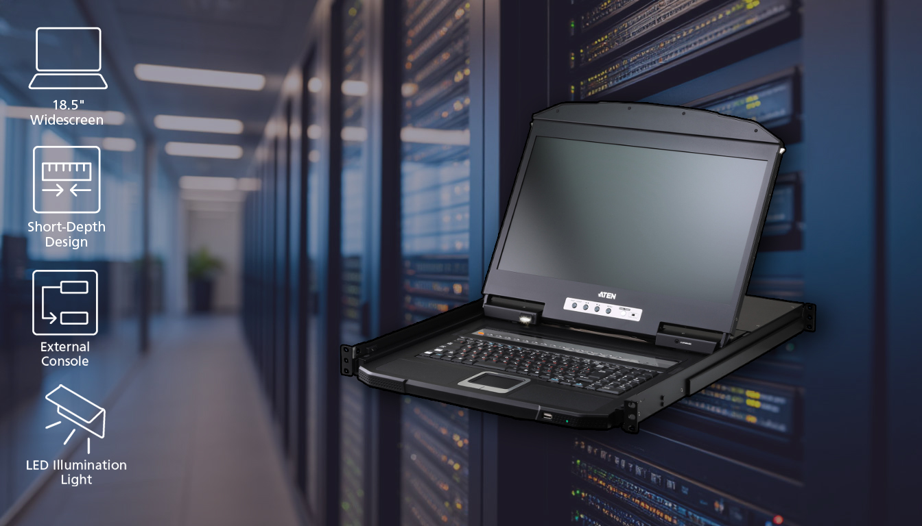 Уже совсем скоро наш ассортимент пополнится серией профессиональных KVM-консолей от лидера рынка — компании ATEN. Вашему вниманию будут представлены четыре новые модели, специально разработанные для безупречного порядка в стойках серверного оборудования и рабочих зонах диспетчерских. Каждое устройство, выполнено в компактном 1U-формате и интегрирует 18,5-дюймовый дисплей со светодиодной подсветкой, клавиатуру и сенсорную панель в единый выдвижной модуль.