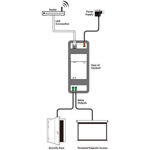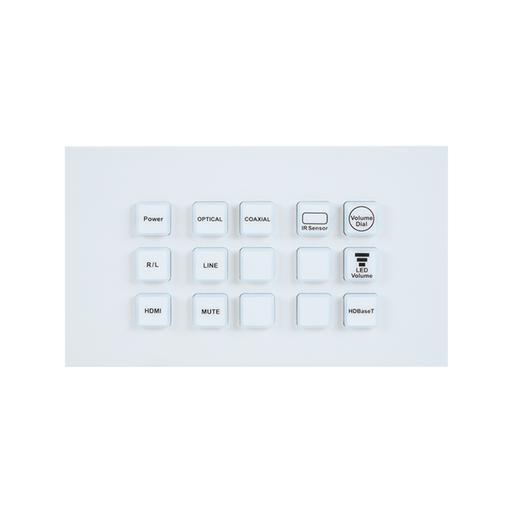 Панель управления с 15 кнопками (128 команд), 2 реле, Ethernet 100/1000BaseT (RJ45), может получать питание по PoC (Power over Cable), специальное ПО для настройки и добавления еще 15 виртуальных кнопок на ПК управления.