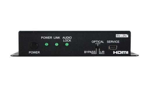 Эмбеддер стереоаудио (2хRCA) или цифрового аудио S/PDIF (TOSLINK) с частотой до 192 кГц в сигнал UHD HDMI до 4096x2160/60 (4:4:4) c HDCP 1.4, 2.2 и расширенным EDID, управление по RS-232 через USB, специальное ПО.
