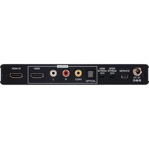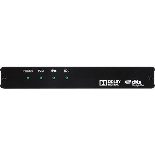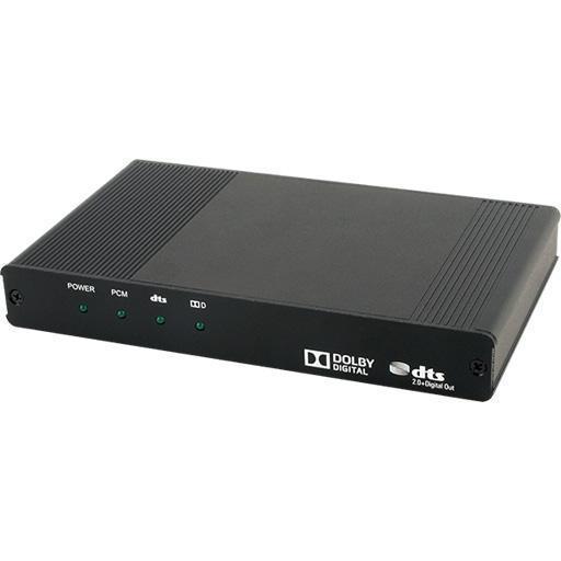 Деэмбеддер многоканального цифрового аудио Dolby Digital / DTS 2.0 формата 7.1 до 48 кГц S/PDIF (TOSLINK, RCA) и аналогового стерео (2хRCA) из проходного сигнала HDMI 3840x2160/30, 4096x2160/24 (YUV 4:2:0 – 4K2K/60, 3D) c HDCP и EDID.