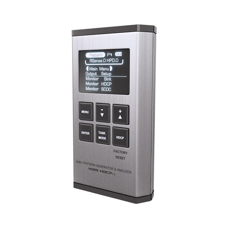 Портативный генератор и анализатор сигналов HDMI 4K до 4096x2160/60 (4:4:4, 8 бит) c HDCP 1.4/2.2, SCDC, EDID и HDR. 11 встроенных изображений, функция тестирования кабелей. Полоса пропускания 600 МГц. Вход/выход HDMI с поддержкой LPCM 2.0, 5.1, 7.1. Питание от внутренней батареи или по USB.