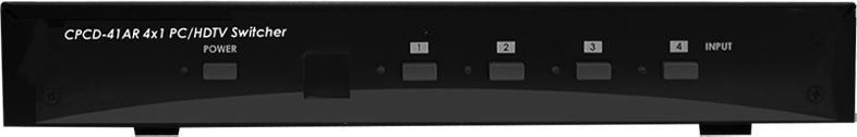 4:1 Коммутатор CPCD-41AR сигналов VGA и небалансных стереофонических аудиосигналов, с возможностью дистанционного управления. При использовании переходных кабелей может использоваться для коммутации компонентных видеосигналов HDTV. Устройство может работать с видеосигналами самого высокого разрешения: вплоть до 1080p - для HD и WUXGA - для компьютерной графики. Прибор выполнен в настольном корпусе.