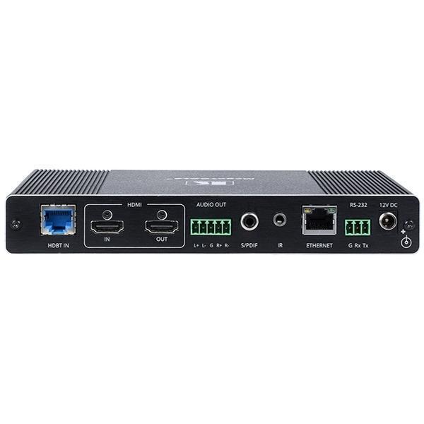 Для входа HDBaseT прибор обеспечивает приём видео/аудио потока, а также ретрансляцию Ethernet, интерфейса RS-232 и сигналов ИК по кабелю на витой паре (при условии работы с совместимым передатчиком HDBaseT).