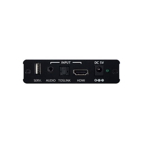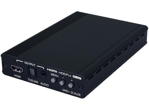 Масштабатор сигналов HDMI до 4096x2160p/60 (4:4:4, 8 бит) c HDR, HDCP 1.4, 2.0 и EDID, эмбеддер / деэмбеддер цифрового S/PDIF (TOSLINK) и аналогового стереоаудио (miniJack 3,5 мм). 3:2 / 2:2 pull down, регулировка выходного сигнала. Полоса пропускания 600 МГц, встроенное меню.