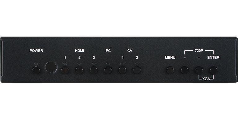 - Коммутирует сигнал с одного из входов (2xCV, VGA, 3xHDMI) на один выход HDMI