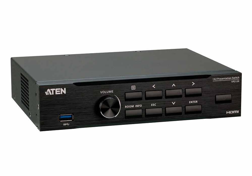 ATEN VP2120 - Бесшовный презентационный коммутатор, включающий в одном устройстве функции матричного видео коммутатора, четырехпоточного режима вывода, Аудио DSP и платформу для обмена идеями. Благодаря плавному переключению между потоковыми источниками, интерактивному обмену идеями и сетевым возможностям, обеспечивающим беспроводное соединение для мобильных устройств, VP2120 и ATEN Video Presentation Control App расширяют возможности совместной работы BYOD (использование личных устройств) по беспроводному соединению в любое время: как только потребуется короткое собрание, мгновенный мозговой штурм или специальный звонок.