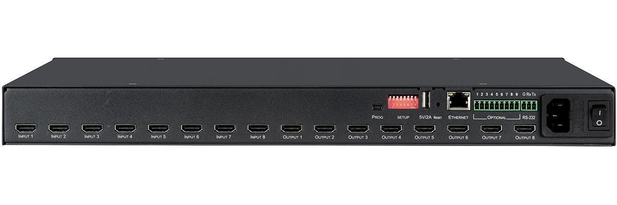 Матричный коммутатор 8х8 HDMI с HDCP 2.2, EDID, 3D и ARC, Step-In, поддержка 4K/60 (4:4:4). Управление по IP (web-интерфейс) и RS-232.