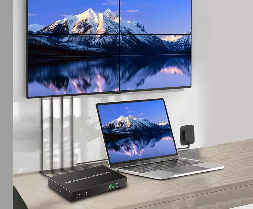 LKV104VW позволяет собрать видеостену из 2-х, 3-х или 4-х мониторов в любой конфигурации. Разрешение входов или выходов 1080p, максимальное возможное разрешение 1920×1200.