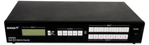 Opticis ODM88 - Матричный коммутатор 8:8 сигналов DVI позволяет произвольно коммутировать сигналы DVI-D интерфейса с любого из восьми входов на любой из восьми выходов. Поддерживает коммутацию сигналов компьютерной графики с разрешением до 1920x1200 и форматов высокой четкости до 1080p. Возможно последовательное трехуровневое каскадирование для увеличения общей размерности коммутационной матрицы. Передняя панель снабжена ЖК-дисплеем для отображения состояний коммутатора.Особенности Opticis ODM88: