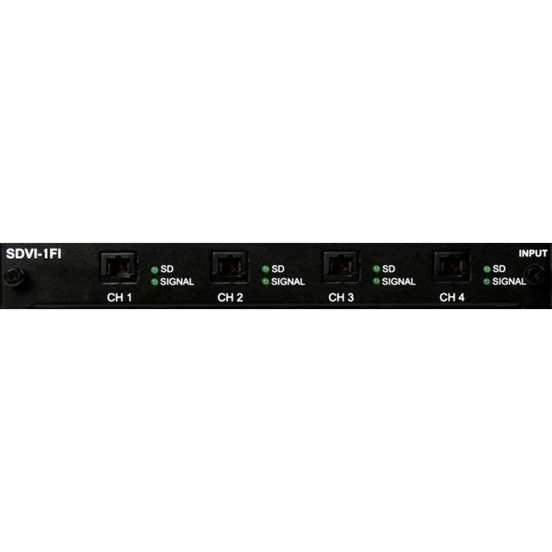Opticis SDVI-1FI - плата входов модульного матричного коммутатора Opticis OMM-1000 с 4-мя оптическими портами на разъемах SC для коммутации сигналов интерфейса DVI-D. Поддерживаются разрешения до 1920х1200, 60 Гц и 1080p.