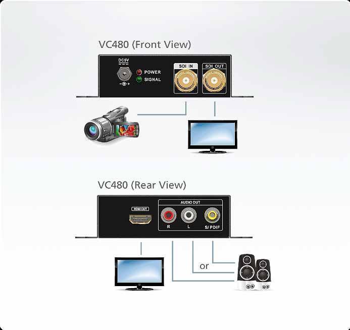 VC480-AT-G – Конвертер ATEN VC480 сигналов 3G / HD / SD SDI в HDMI обеспечивает профессиональный способ обмена сигналами высокого качества в режиме реального времени. Преобразование сигнала SDI и HDMI является на 100% цифровым и гарантирует отсутствие потери качества при передаче, как для аудио, так и видеосигналов. Конвертер VC480 является лучшим выбором для надежного преобразования сигналов, необходимого при точечном мониторинге или применительно к публичному вещанию.