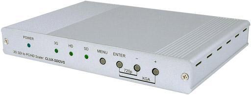 CLUX-SDI2VS - преобразователь сигналов SD/HD и 3G SDI в формат 1080p или 1920х1200 с аналоговым или цифровым двухканальным звуком. Эквализация и перетактование мониторного SDI сигнала. Дистанция приема 3G SDI - 100 м, HD SDI - 200 м, SDI - 300 м. Выбор разрешения выходного сигнала с передней панели. Интуитивно понятное встроенное меню управления устройством.