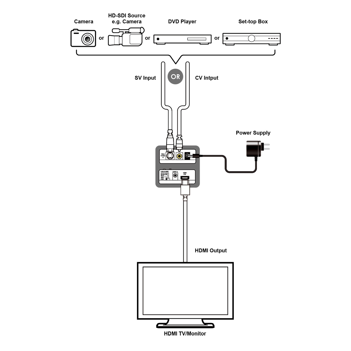CM-398HN – преобразователь сигналов композитного и S-Video с аналоговым стереоаудио в сигнал HDMI.