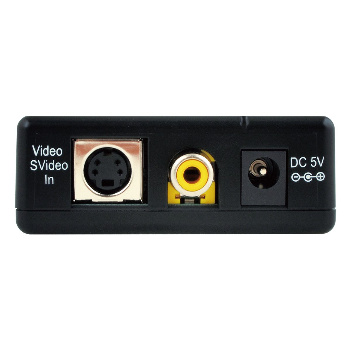 Благодаря 3,5-миллиметровому аудиовходу стереозвук может быть интегрирован с выбранным видео. Кроме того, устройство поддерживает преобразование частоты кадров, что позволяет просматривать файлы DVD, видеомагнитофонов и игр на HD-мониторе или телевизоре.