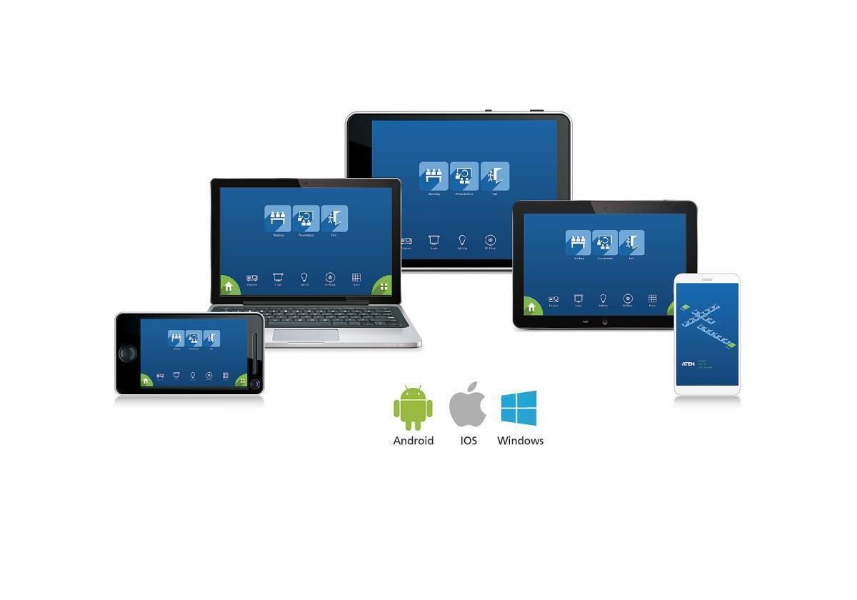 Программное обеспечение Mobile App – это бесплатное приложение системы управления ATEN Control System , поддерживающее операционные системы iOS, Android и Windows, а также различные типы мобильных устройств, такие как смартфоны и планшетные ПК. Это приложение позволяет загружать несколько профилей просмотра из контроллера системы управления (ATEN Control Box), для осуществления контроля над аппаратными устройствами в разных помещениях. Статус управления различных мобильных устройств синхронизируется без конфликтов, в то время как встроенный механизм проверки подлинности пользователя обеспечивает безопасность путем фильтрации прав доступа.