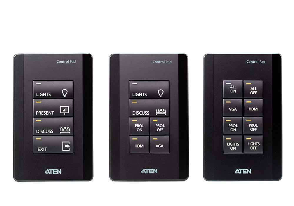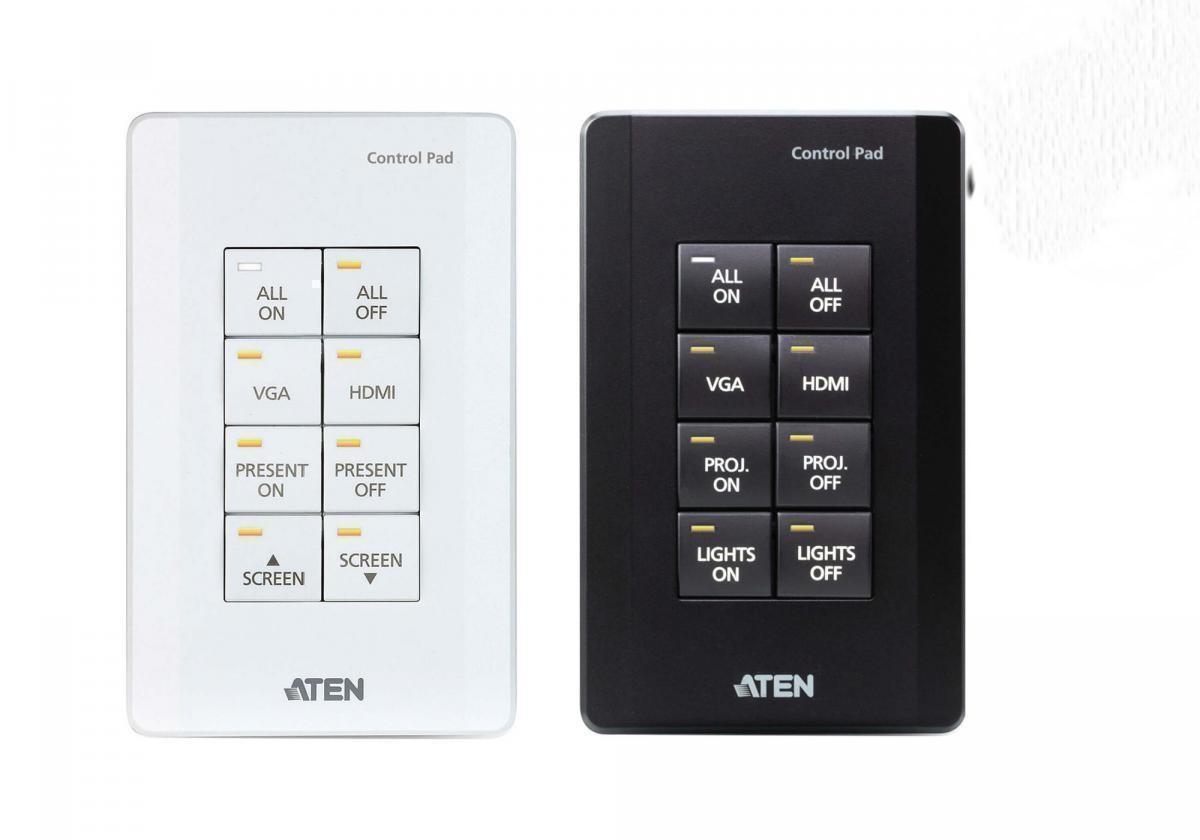 Система управления ATEN VK01001 представляет собой полностью настраиваемую 8-кнопочную панель управления, которая в качестве единого решения объединяет в себе контроллер системы и блок клавиш (клавиатуру) для управления конференц-залом или учебной аудиторией малого размера.
