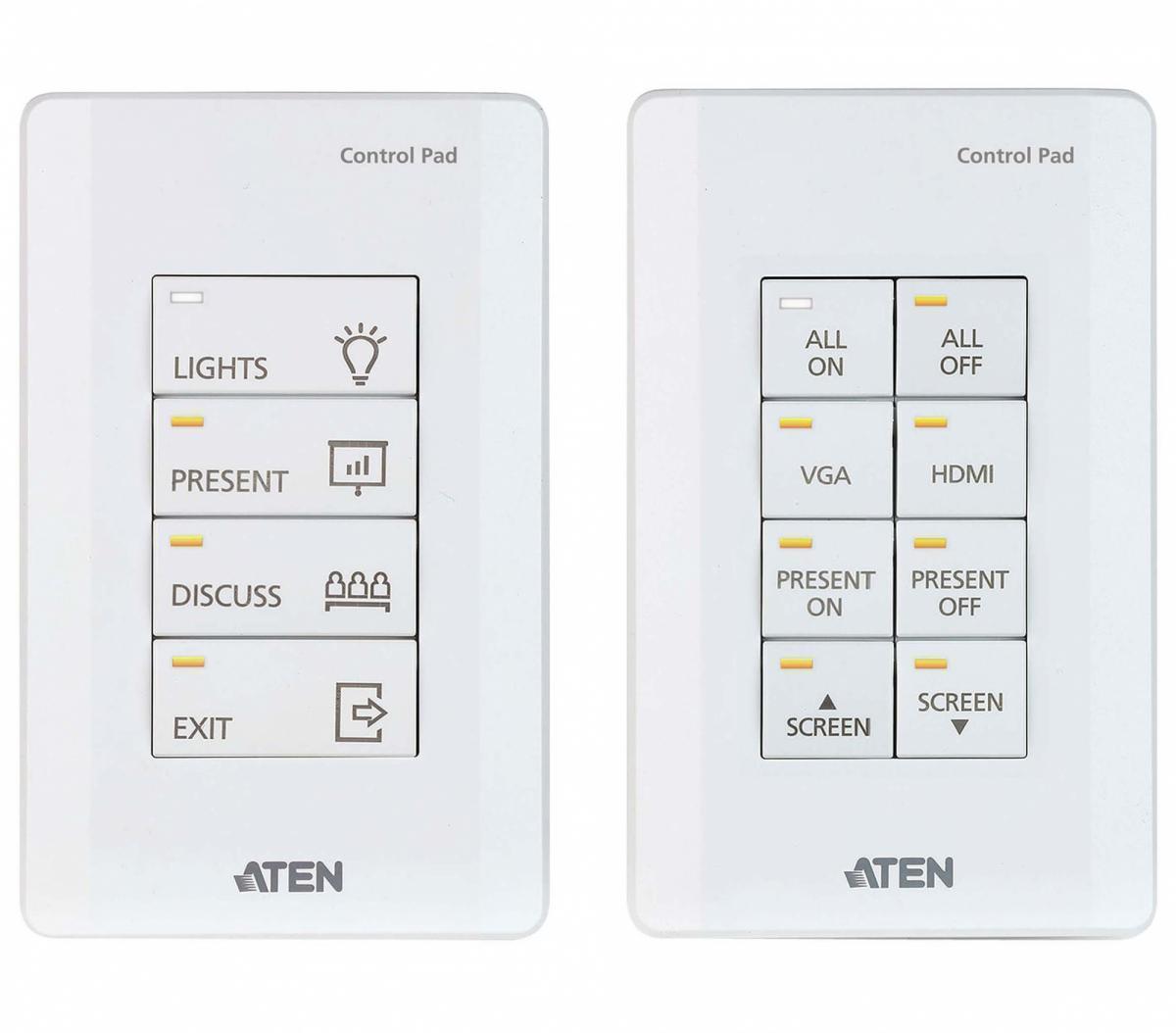 Система управления ATEN VK0100 представляет собой полностью настраиваемую 8-кнопочную панель управления, которая в качестве единого решения объединяет в себе контроллер системы и блок клавиш (клавиатуру) для управления конференц-залом или учебной аудиторией малого размера.