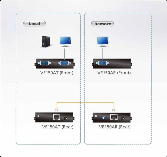VE150A-AT-G – Видео Удлинитель ATEN VE150A позволяет передавать видеосигнал между источником (например, компьютером) и системой воспроизведения (монитором) на расстояние до 150 м.Удлинитель VE150A состоит из передающего и приемного устройства, соединенных стандартным кабелем витая пара Cat 5e.