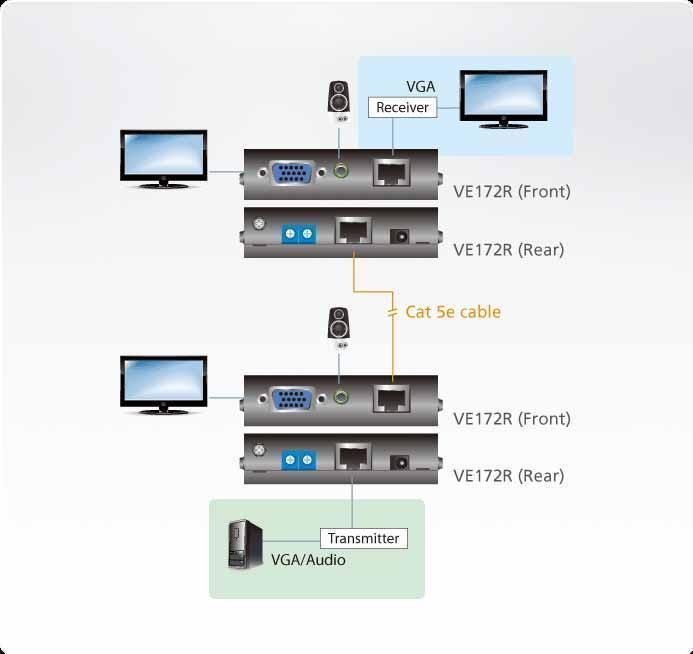 1x VE172R A/V Cat 5 приемник с каскадированием