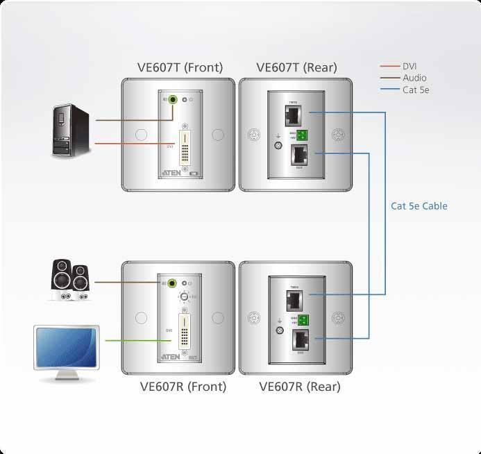VE607-AT-G – Видеоудлинитель ATEN VE607 предназначен для удобного монтажа в одноблочной распределительной коробке типа MK.Он позволяет с помощью кабеля Cat 5e/6 расширить до 60 метров расстояние передачи сигналов DVI и звука, поддерживает широкоформатные экраны, обеспечивая при этом отличное качество изображения.