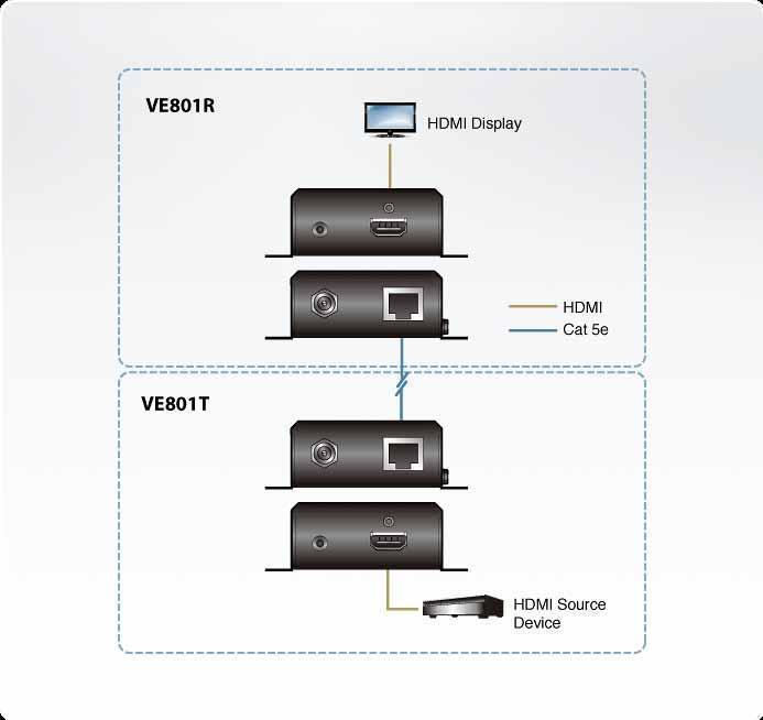HDMI-приемник VE801R является отличным выбором для центров цифровых развлечений или любых других применений, где HDMI видео высочайшего качества требуется передавать на большие расстояния.
