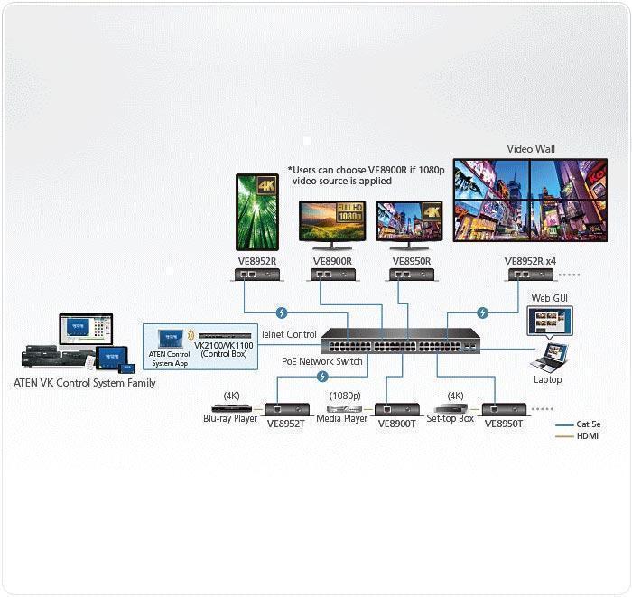ATEN VE8952R 4K HDMI over IP с PoE, 4K