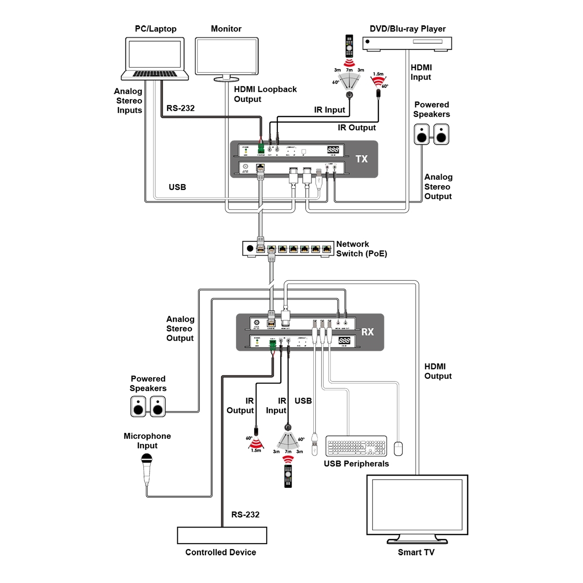 - Поддерживает независимую раздельную маршрутизацию аудио/видео и матрицы управления
