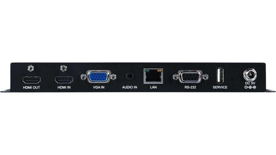 Кодер и передатчик в сеть Ethernet сигналов HDMI 4K/60 (4:4:4, 8 бит) с HDCP 1.4, 2.2 и VGA (1920x1200/60) с аудио (miniJack 3,5 мм), выходной сигнал – до 1080p/60 с мониторным выходом HDMI, микширование аудио. Расширенный EDID. Полоса пропускания 600 МГц, Управление по IP (Telnet или web-интерфейс), RS-232 и ИК.