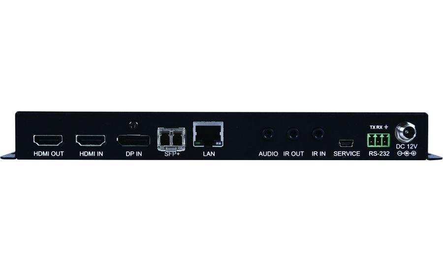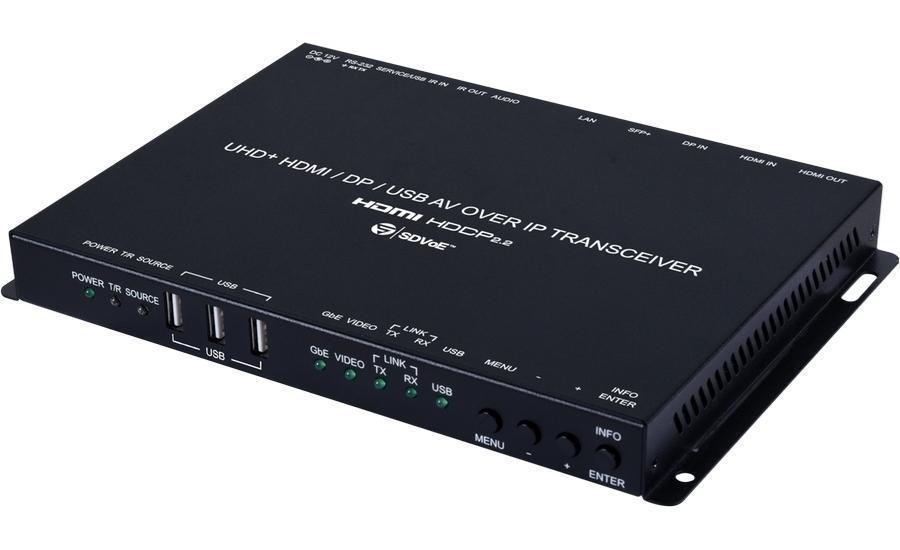 Конфигурируемый приемник / передатчик сигналов HDMI и DP 4096x2160p60 (4:4:4) c HDR, HDCP 1.4, 2.0, Ethernet, стереоаудио, 3 х USB 2.0, RS-232 и двунаправленного ИК по оптической линии с использованием модуля SFP+, технология IP (SDVoE), мониторный выход HDMI. При специальном ПО работает как матричный коммутатор, контроллер видеостены, мультивьювер. Полоса пропускания 600 МГц. Управление по IP, с помощью CDPS-CS7-S.