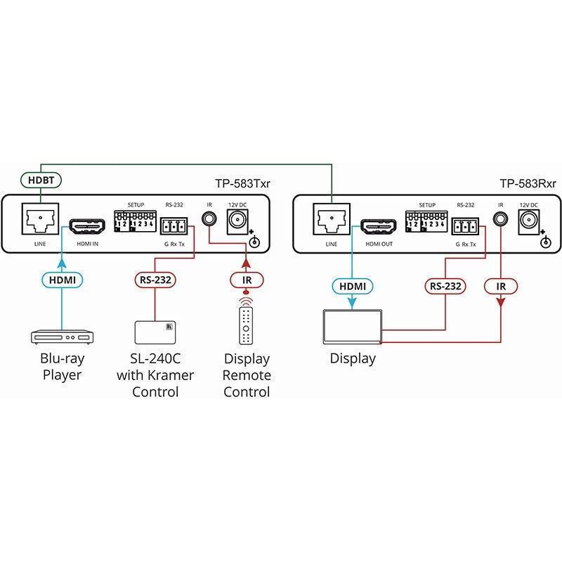 TP-583Rxr – приемник сигналов HDMI разрешением до 4096x2160/60 (4:4:4), сигналов RS-232 и ИК по витой паре HDBaseT. Устройство использует DIP-переключатели для расширенной настройки – выбора режима и степени компрессии, режима передачи ИК, RS-232. При стандартной компрессии принимает сигналы 4096x2160/60 (4:4:4) на расстоянии до 100 метров, а сигналы 4096x2160/60 (4:2:0) - до 180 метров. При высокой компрессии принимает сигналы 1080p по линии длиной до 200 метров.