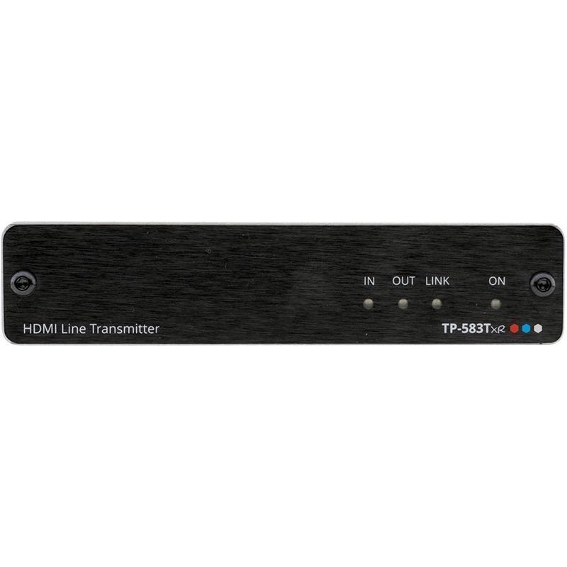 TP-583Txr – передатчик сигналов HDMI разрешением до 4096x2160/60 (4:4:4), сигналов RS-232 и ИК по витой паре HDBaseT. Устройство использует DIP-переключатели для расширенной настройки – выбора режима и степени компрессии, режима передачи ИК, RS-232. При стандартной компрессии передает сигналы 4096x2160/60 (4:4:4) на расстоянии до 100 метров, а сигналы 4096x2160/60 (4:2:0) – до 180 метров. При высокой компрессии передает сигналы 1080p по линии длиной до 200 метров.