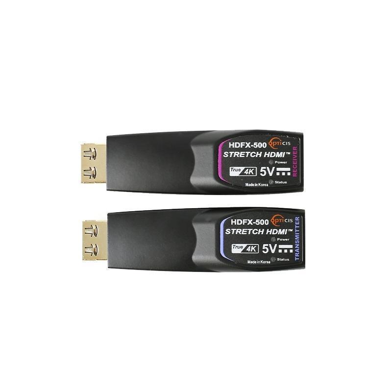 Opticis HDFX-500-TR - удлинитель для передачи сигналов HDMI 2.0 по одному многомодовому оптоволоконному кабелю OM3 с разъемами LC на расстояние до 200 м. Поддерживаются сигналы разрешением до 4096x2160/60 (YUV 4:4:4), 3D c CEC, EDID, HDR и HDCP 2.2.