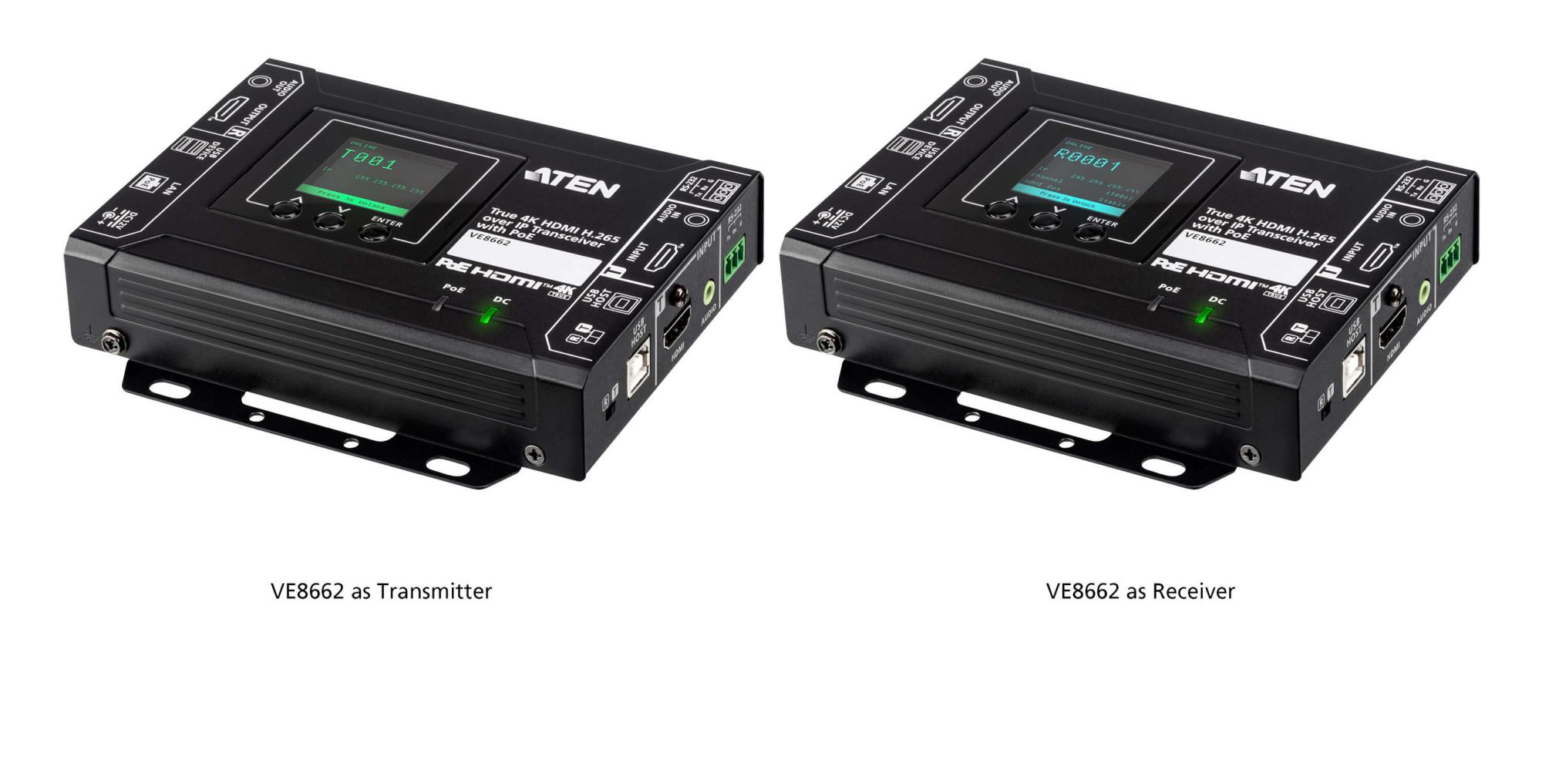 ATEN VE8662 True 4K HDMI H.265 over IP Transceiver с PoE объединяет функции передатчика и приемника в одном устройстве, предлагая гибкое развертывание и простую настройку для различных AV-решений.Работающий на стандартной технологии кодирования и декодирования H.265 для сжатия видео, VE8662 обеспечивает эффективную передачу видео/аудио HDMI 3840 x 2160 @ 60 Гц (4:4:4), стереоаудио, USB 2.0 и RS-232 сигналов по одному кабелю Ethernet на расстояние до 100 метров (точка-точка), со встроенной коррекцией ошибок для низкой задержки и сокращенного использования полосы пропускания. Он также поддерживает встроенный и извлеченный звук, что позволяет встраивать звук в поток HDMI или извлекать и доставлять его отдельно.