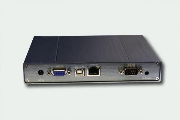 Обеспечивает передачу VGA сигнала и стереозвука в локальную сеть.