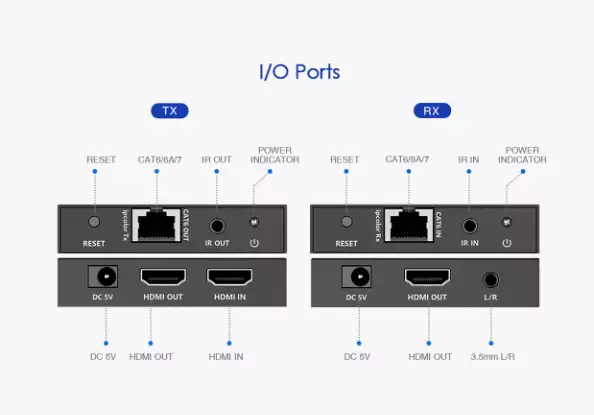 Lenkeng LKV565P - это бюджетный комплект передатчика и приемника HDMI по витой паре, который обеспечивает стабильную передачу видео с разрешением 4K на расстояние до 70 метров. Видеосигнал передается с нулевой задержкой и без компрессии (без ухудшения качества). Питание подключается только со стороны приемника.Комплект LKV565 поддерживает обратную передачу ИК сигнала. Передатчик имеет сквозной HDMI выход для подключения локального телевизора. Аудио выход у приемника позволяет извлечь аналоговое аудио из HDMI и подключить звукоусилительную систему.