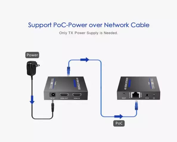 Lenkeng LKV565P - Удлинитель HDMI, 4K, HDMI 2.0, CAT6/6a/7 до 70 метров, проходной HDMI, PoC