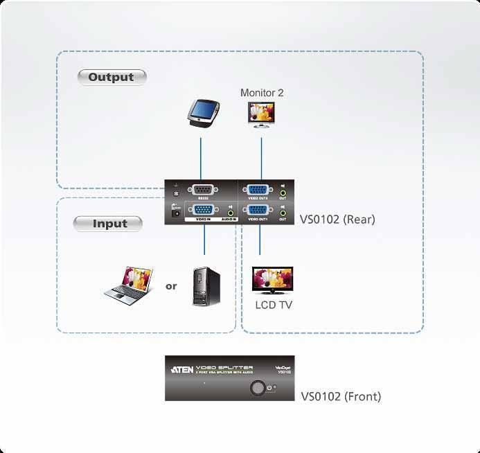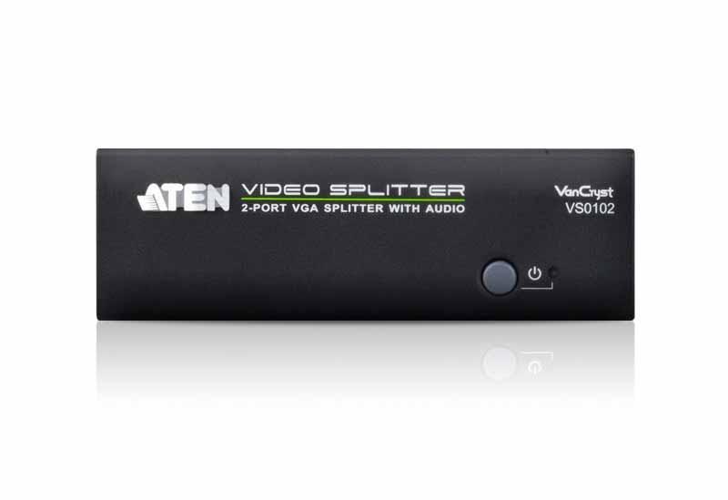 VS0102-AT-G – Видео Разветвитель ATEN VS0102 позволяет 1 VGA видеосигнал и 1 звуковой стереоканал передавать на 2 аудио/видео выхода соответственно. Разветвитель поддерживают частоту видео до 450МГц, что означает поддержку разрешений до 1920х1440.Кроме того, для полной интеграции системы устройство имеет встроенный порт RS232, к которому можно подключить ПК или контроллер для управления системой.