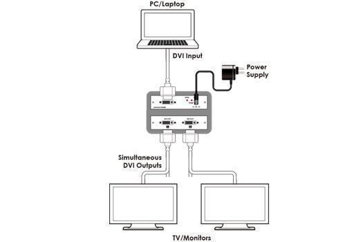 1:2 Усилитель-распределитель CDVI-2S сигналов DVI-D Single Link принимает сигнал и затем распределяет его на два идентичных буферизированных выхода, каждый из которых может быть подключен к дисплею кабелем DVI длиной до 15 м. Усилитель может работать с сигналами HDMI, для этого необходим соответствующий адаптер или переходный кабель. Отвечает требованиям HDCP, совместим с HDTV. Выполнен в металлическом корпусе черного цвета.