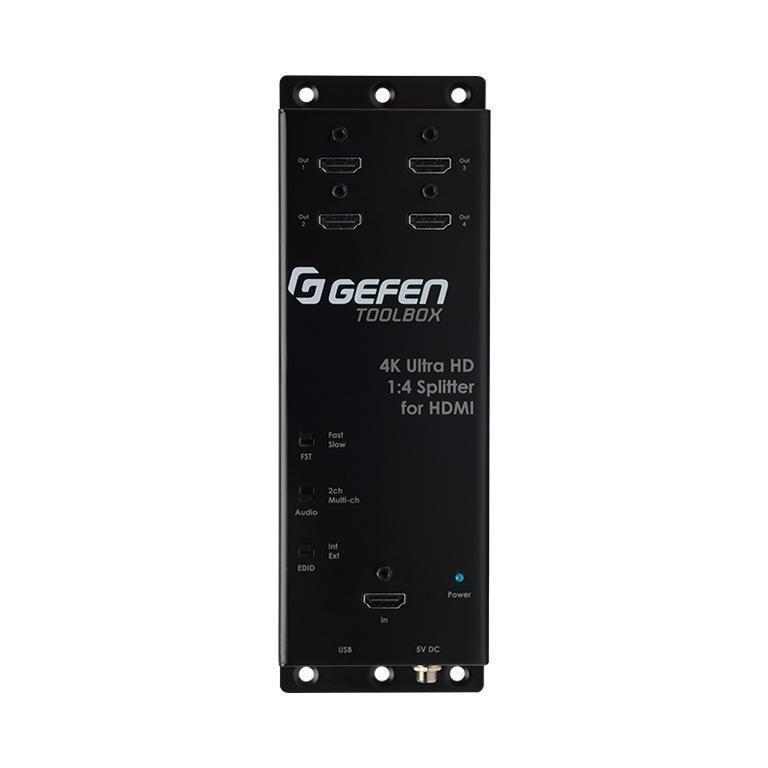 Gefen GTB-HD4K2K-144C-BLK – усилитель-распределитель 1:4 сигналов HDMI 2.0 4K2K с поддержкой многоуровневого каскадирования. GTB-HD4K2K-144C-BLK позволяет выводить сигнал с одного источника на четыре дисплея. Поддерживаются разрешения сигнала до 4K Ultra HD (3860x2160, 60 Гц, 4:2:0) и 4K DCI (4096x2160, 24/30 Гц), сигналы с Deep Color, 3D-форматы и встроенное многоканальное аудио высокого качества (HBR), в том числе LPCM до 7.1 и в форматах сжатия без потерь. Устройство соответствует HDCP. Использование технологии Gefen FST (Fast Switching Technology) ускоряет процесс установления связи между источником и устройством отображения, гарантирует отсутствие срывов сигнала на любом из выходов в случае коммутации, включения или выключения устройств отображения на других выходах. Предусмотрены возможности выбора встроенного и внешнего блока EDID, а также выбора формата аудио – двухканального или многоканального.Ключевая особенность GTB-HD4K2K-144C – поддержка каскадирования до 10-ти уровней. К одному или ко всем выходам прибора подключаются аналогичные усилители-распределители, что позволяет многократно увеличить число задействованных в системе дисплеев (при этом каждый усилитель-распределитель в системе должно быть подключен к электросети собственным источником питания, прилагаемым в комплекте). Благодаря этому усилитель-распределитель GTB-HD4K2K-144C прекрасно подходит для использования в крупных системах распределения сигналов и Digital Signage.