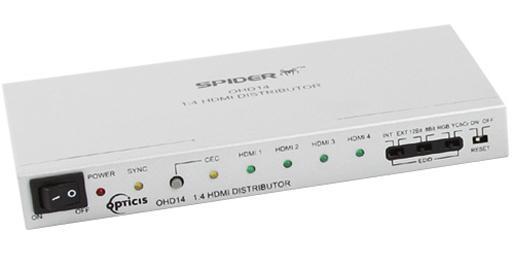 Opticis OHD14 - усилитель-распределитель 1:4 сигналов интерфейса HDMI, позволяет распределять сигналы цифрового интерфейса HDMI с одного источника на четыре выхода одновременно.