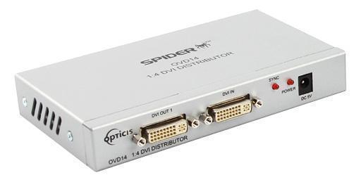 Opticis OVD14 - усилитель-распределитель 1:4 сигналов интерфейса DVI, позволяет распределять сигналы интерфейса DVI с одного источника на четыре выхода одновременно. Поддерживает сигналы в форматах высокой четкости до 1080p и сигналы компьютерной графики с разрешением до 1920x1200. Распределение DVI сигналов производится без потерь сигнала и без цифрового шума благодаря функции усиления и достаточной мощности внешнего источника питания напряжением 5 В и током 2,6 А.