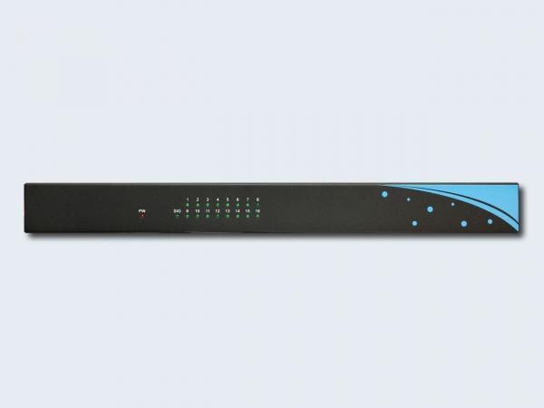 Питания - 1 (красный) Входа - 1 (зеленый) Выхода - 16 (зеленых) |