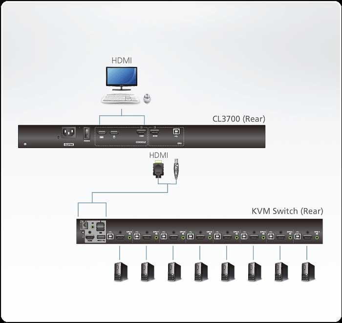 CL3700 оснащена портом для внешней USB-мыши на передней панели устройства, а порты для второй консоли KVM (USB-клавиатура / мышь, HDM-монитор) предусмотрены на задней панели. CL3700 также включает в себя два мини-стереофонических порта для подключения аудио динамики.