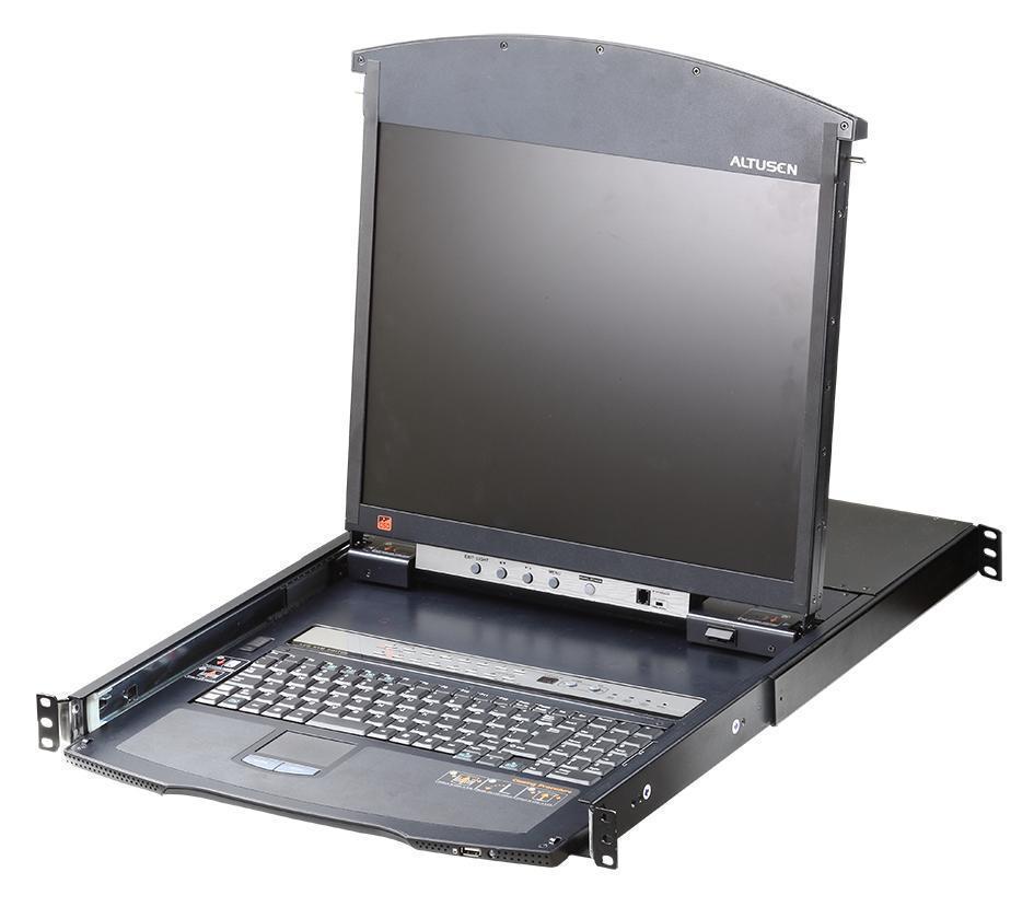 KL1516AiN-AXA-RG – IP KVM Переключатель ATEN KL1516AiN, устройство управления, обеспечивающее безопасный доступ к 16 компьютерам с одной консоли KVM (клавиатура, видео и мышь). Устройство состоит из KVM переключателя интегрированного с 19-ти дюймовым LCD монитором, клавиатурой и тачпадом.Корпус высотой 1U имеет двухрельсовую систему, позволяющую независимо выдвигать монитор и клавиатуру. Для максимально эффективного использования пространства вашего центра обработки данных неиспользуемый модуль клавиатуры/тачпада можно полностью задвинуть, а тонкий ЖК-монитор повернуть и установить вплотную к стойке, что обеспечивает удобное отслеживание работы компьютеров. Это позволяет экономить свободное пространство в серверной комнате или центре обработки данных.