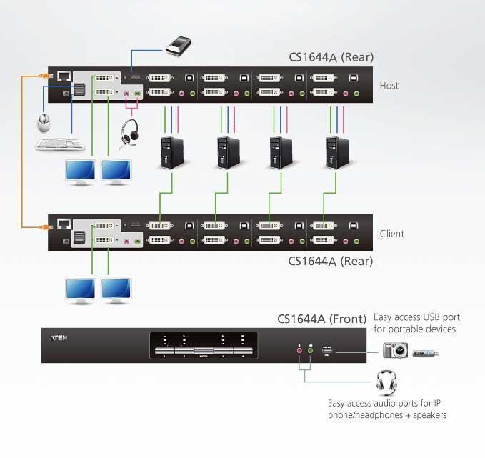 1x CS1644A 4-Port USB DVI Dual View KVMP™ Switch CS1644A