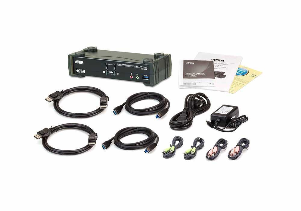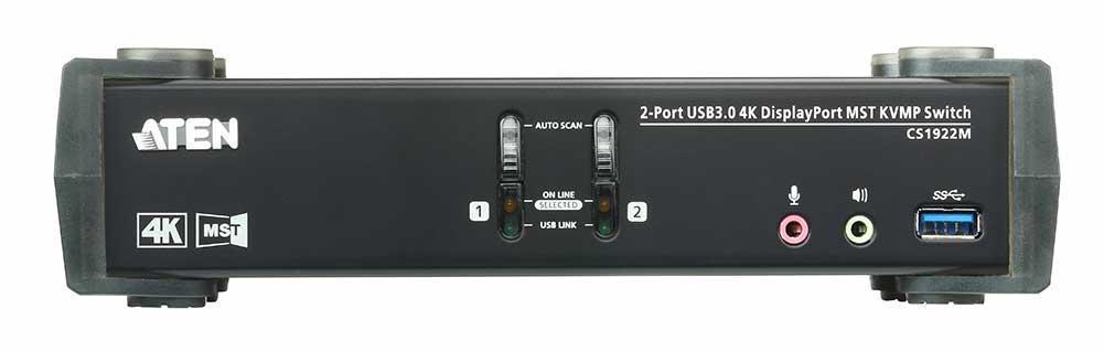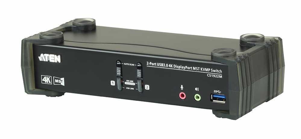 CS1922M-AT-G – 2-х портовый KVM Переключатель ATEN CS1922M с поддержкой USB 3.0 и 4K DisplayPort со встроенным концентратором MST с новейшей технологии Multi-Stream Transport. Обладая возможностями работы в режиме расширения изображения на два монитора (extended desktop mode) или вывода двух раздельных изображений (splitter mode) с разрешением уровня 4K с одного порта DisplayPort 1.2, KVMP™-переключатель CS1922M позволяет пользователям, обладающим двумя дисплеями организовать многозадачность, при этом уменьшив объемные кабельные соединения.