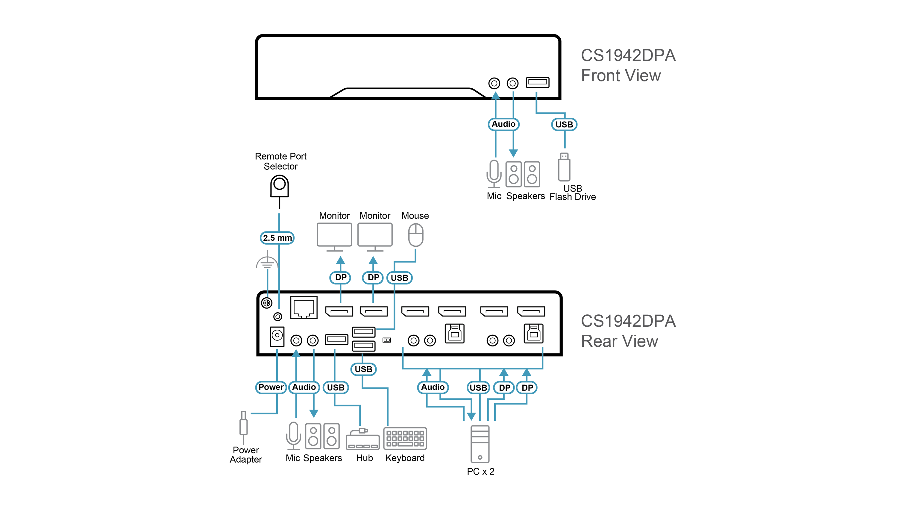 - 1 x CS1942DPA 2-портовый USB 3.0 8K DisplayPort двухдисплейный KVMP™-переключатель