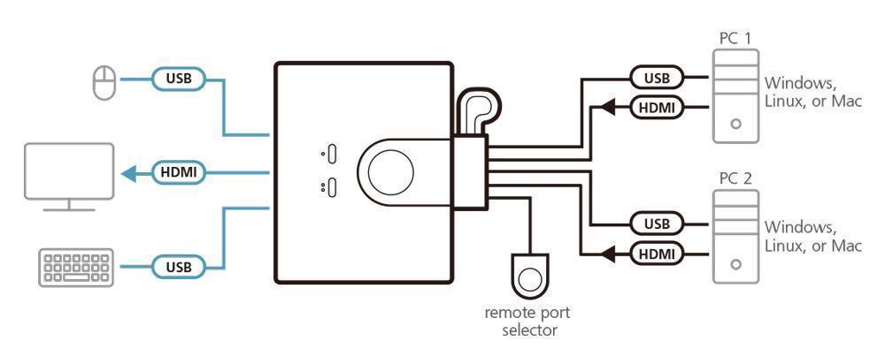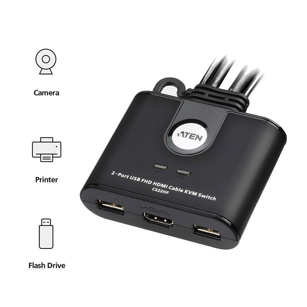 - 1x 2-портовый, USB, FHD HDMI, кабельный KVM-переключатель CS22HF