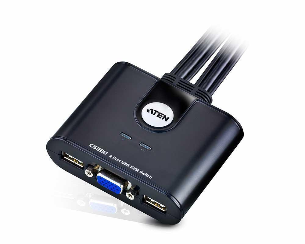 1x 2-портовый KVM-переключатель CS22U со шнуром USB и удаленным переключателем портов